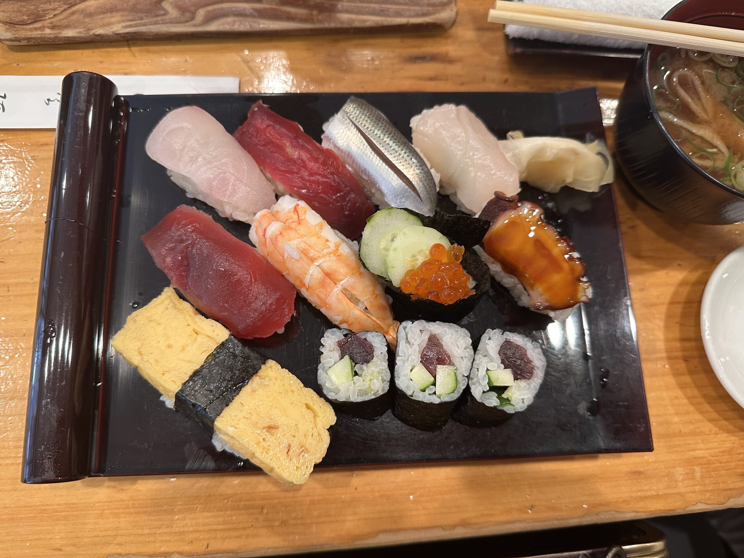 そして肝心のお寿司──これがびっくりするほどのコスパ。ひとつひとつがしっかり大きく、ぎゅっと力強く握られたシャリがずっしりとお腹を満たしてくれる。派手ではない。でも、誠実な美味しさがあって、肩の力を抜いて楽しめる。まさにランチにぴったりな街のお寿司屋さんだ。