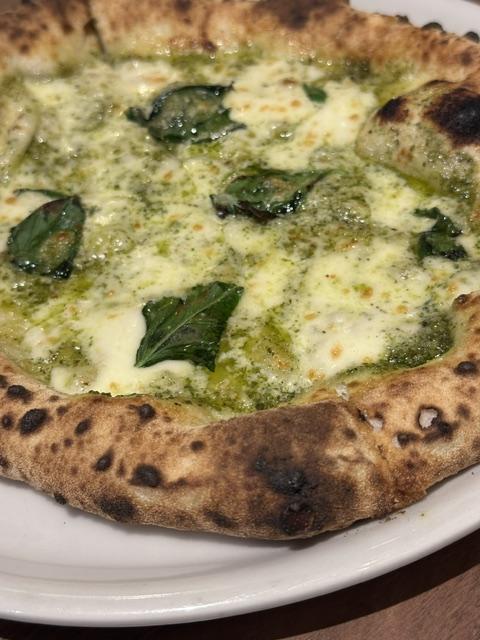 店内に足を踏み入れれば、かすかに漂う焼成香と油脂の温もりが空気を満たし、昼餉の時間帯特有の活気が耳に心地よく響くなり。席に着き、ふと掲げられた本日のピザを見やれば「ジェノベーゼクリーム」とあり、いささか興味をそそられる組み合わせにて、躊躇なくこれを選ぶこととせり。